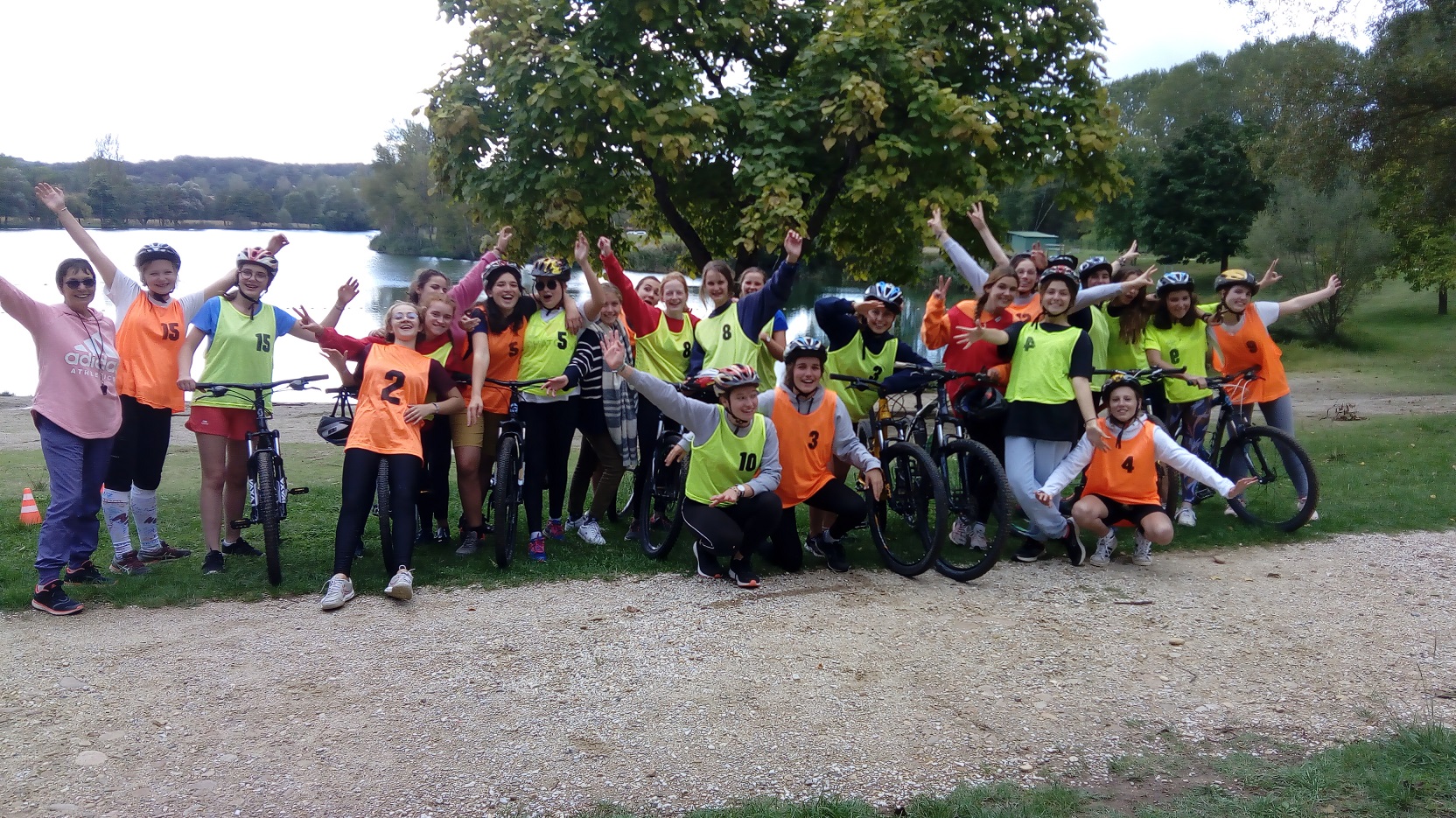 Une vingtaine de filles, licenciées à L’UNSS, ont participé à un relais en VTT par binôme sous le regard bienveillant de Mme Montagne, leur professeur d’EPS et sous un soleil variable.